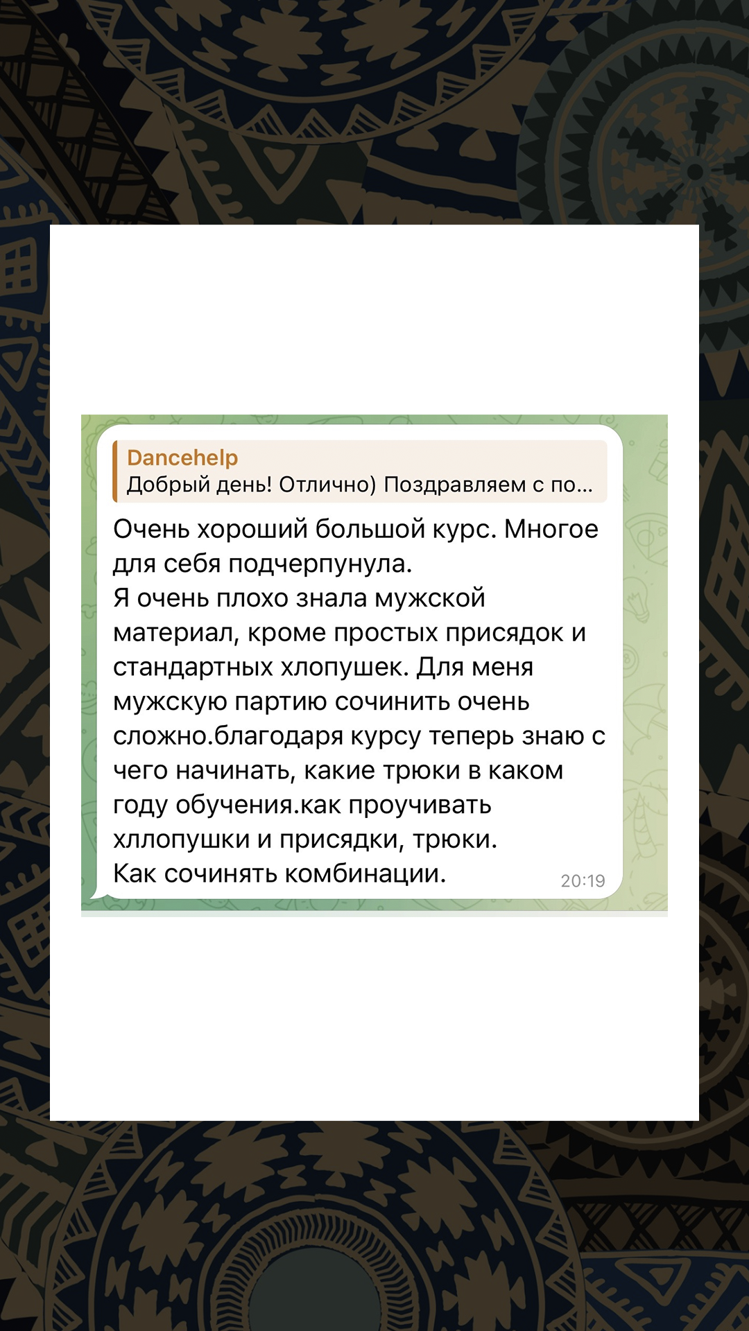Уроки идут в определенном логическом порядке и выходят два раза в неделю, чтобы вы точно успели все освоить в срок. Выполненные задания смотрит, принимает и дает при необходимости обратную связь эксперт и методист Дэнсхелп — Ольга Веньяминова.