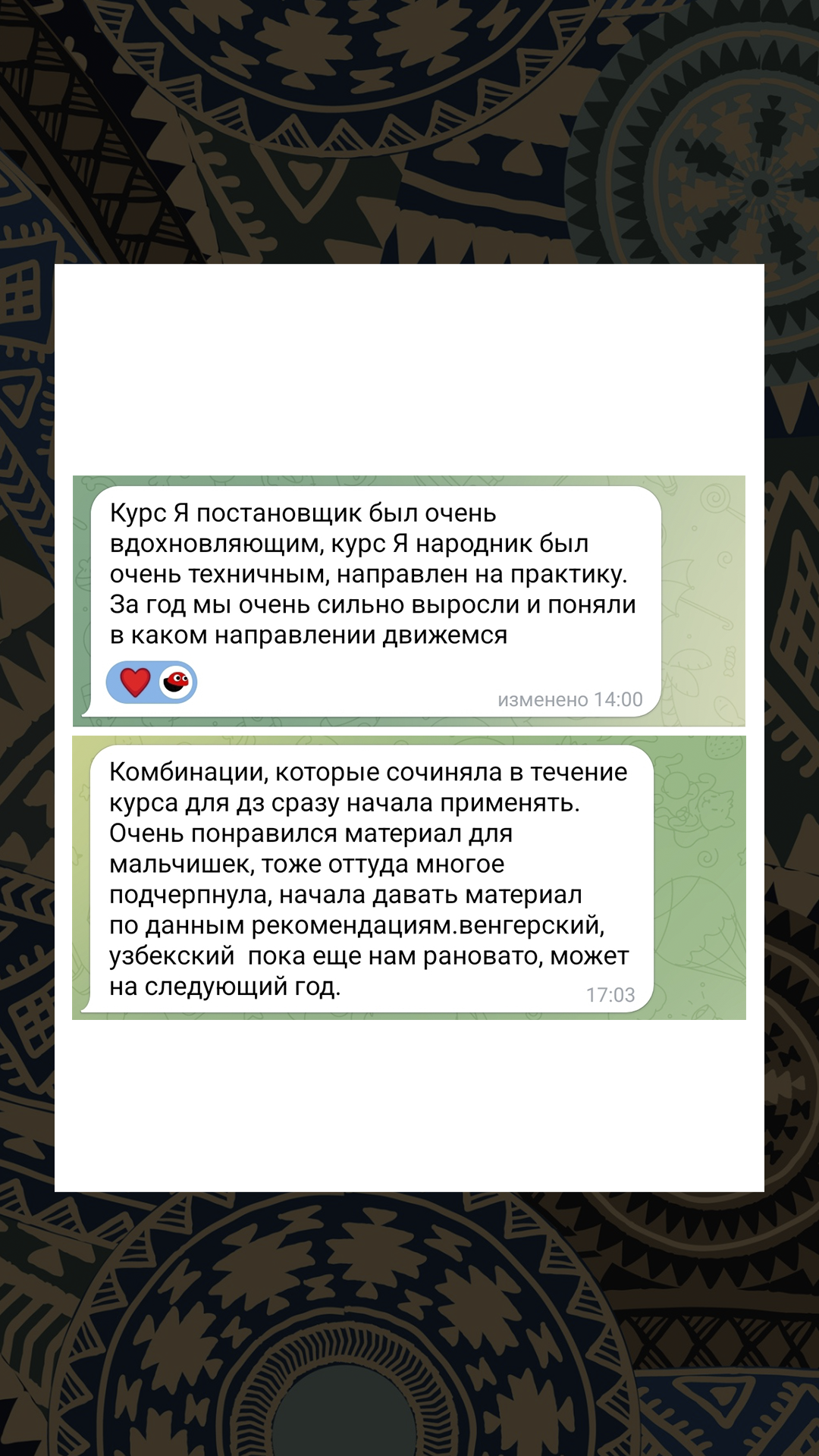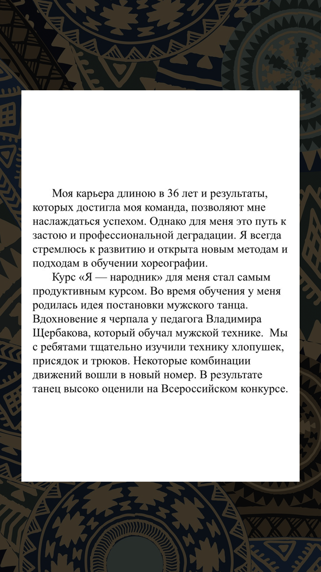 Крутые результаты, победы на конкурсах, техничность учеников и «школа» — прячутся в выучке, понимании нюансов направления и народностей, грамотной методике работы с разными возрастами.