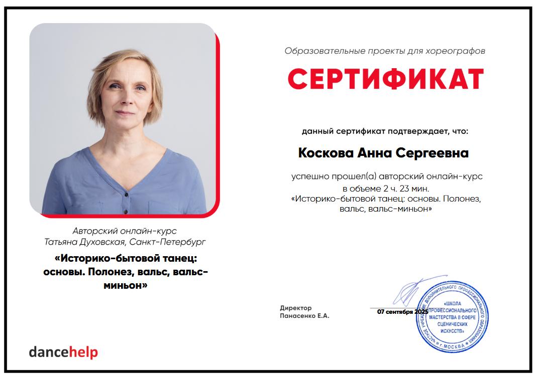 Комплект из трёх онлайн-уроков по историко-бытовому танцу Татьяны Духовской — это скрупулёзная подача материала в том виде, как преподают этот предмет в Академии Русского балета имени А.Я. Вагановой.