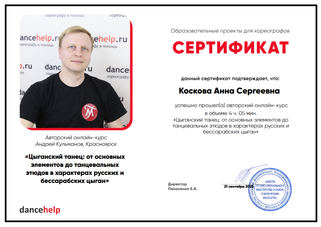 Комплект из четырёх уроков Андрея Кульманова поможет вам разобраться в тонкостях и нюансах цыганского танца и не допустить досадных ошибок при постановке номеров в этом характере.