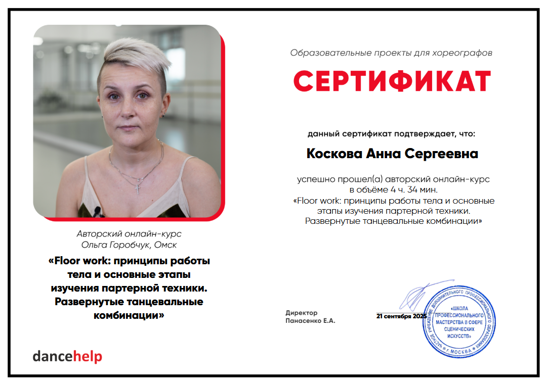 Уроки 4–7 предназначены для работы с учениками продвинутого уровня, которые уже уверенно освоили базовые элементы техники floor work и технически готовы к более сложным комбинациям. Отдельный комплект этих уроков — Floor work: танцевальные комбинации и этюд для исполнителей от 10 лет и старше
