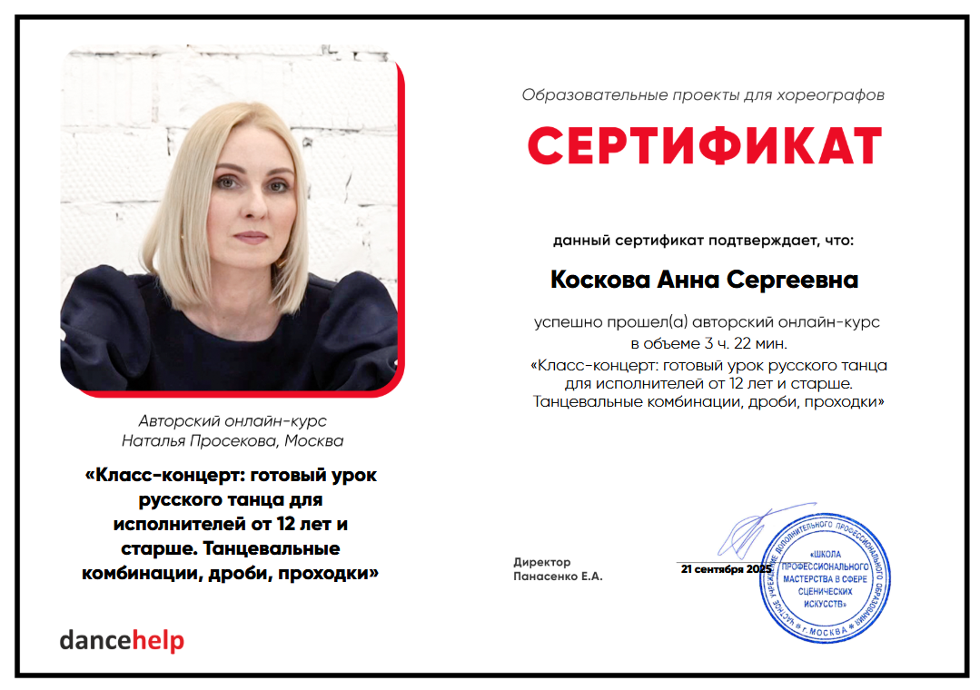 посвящены последовательному разбору движений и комбинаций для итогового показа по народному танцу. Наталья Просекова, выпускница школы-студии при Государственном хоре им. Пятницкого, опираясь на свой опыт, расскажет и покажет — как это можно сделать.
