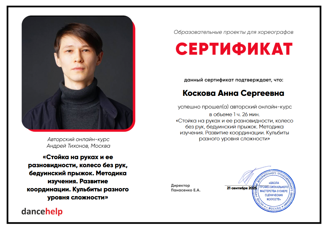 Материал курса отлично подойдет хореографам, которые работают с учениками от 9 лет и стремятся совершенствовать их мастерство в танцевальной акробатике.