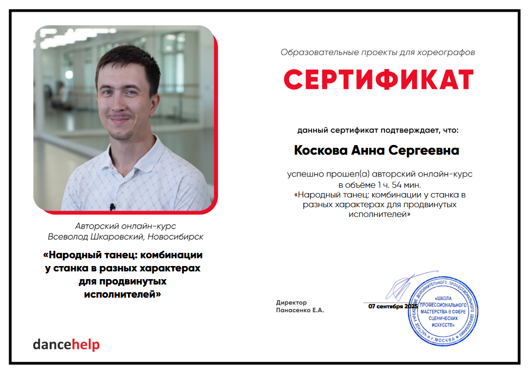 Комплект Всеволода Шкаровского (два урока, общей длительностью — 1 час 54 мин) поможет вам выстроить уроки по народно-сценическому танцу в старших группах и дать ученикам сложный материал методически грамотно.