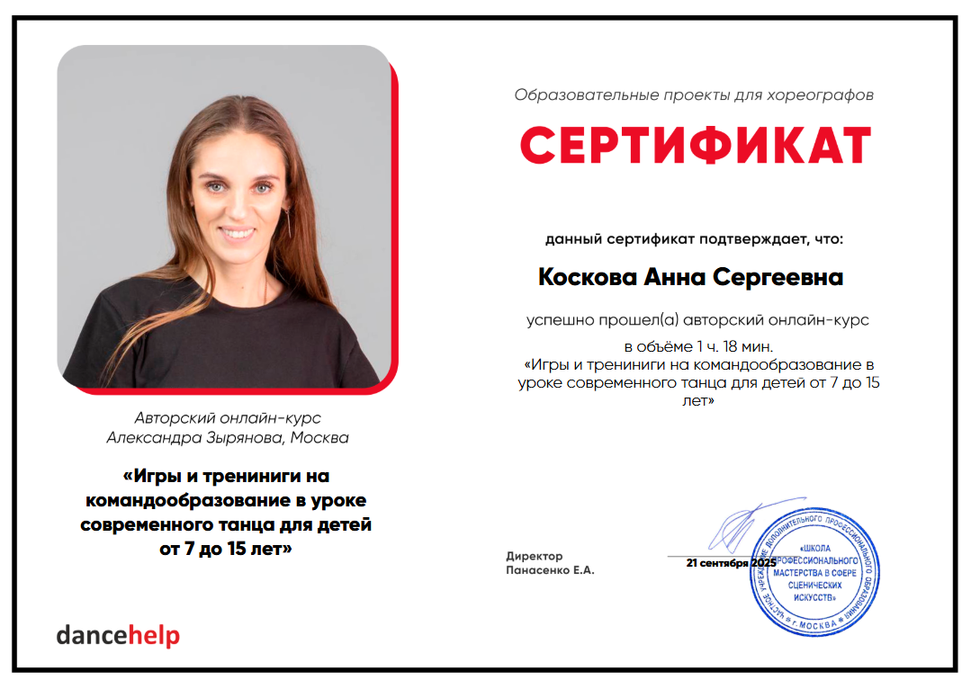 Оба урока входят в полный комплект онлайн-уроков А. Зыряновой — Альтернативные подходы к современному танцу для школьников: игровые технологии, кроссы, импровизация, командообразование